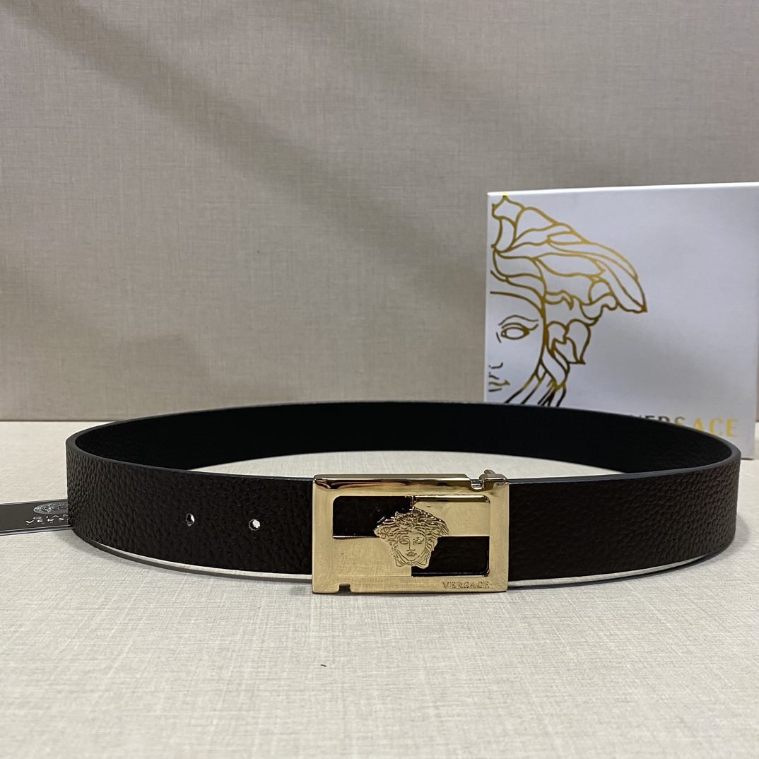 Home Belt VERSACE Belt Versace Gold Square Buckle Black Belt Simple, Fashionable, Noble, and Elegant