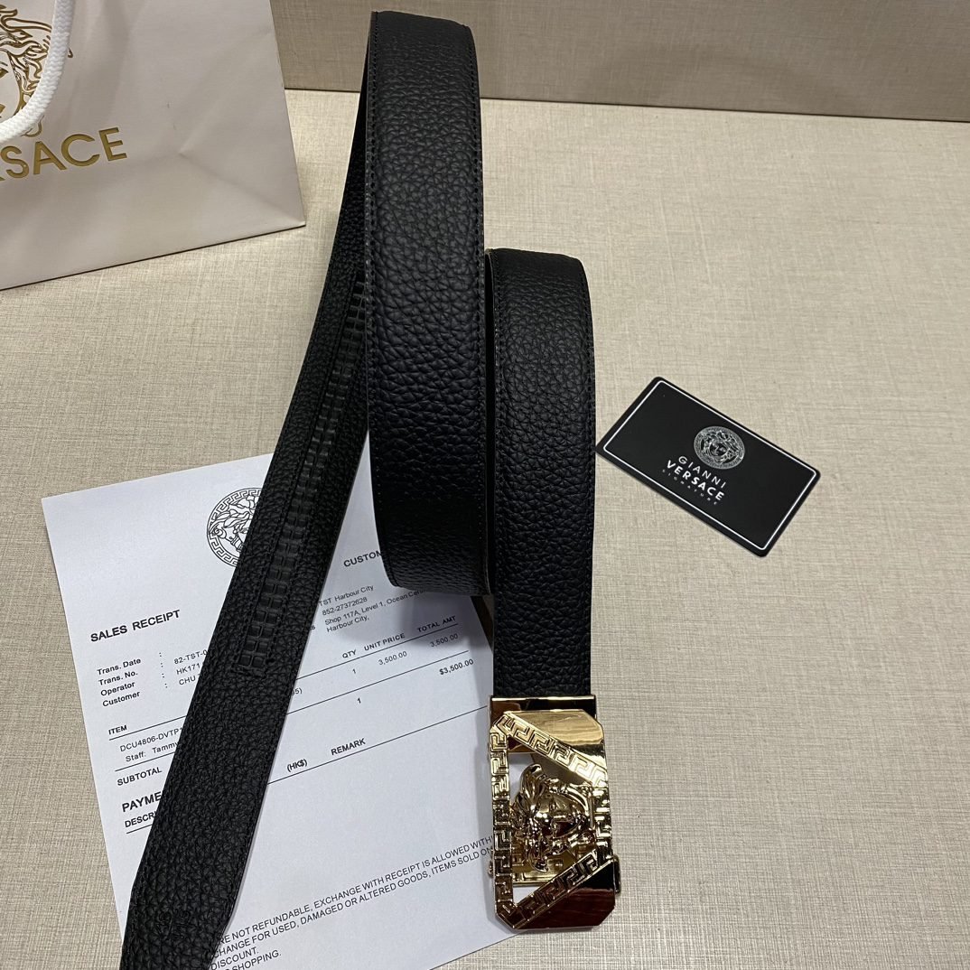 Home Belt VERSACE Belt Versace Gold Square Buckle Black Belt Simple, Fashionable, Noble, and Elegant