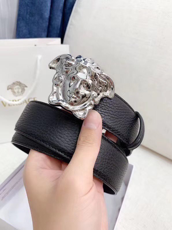 Home Belt VERSACE Belt Versace Silver Medusa Embossed Buckle Black Belt Simple and Elegant, Low key Luxury