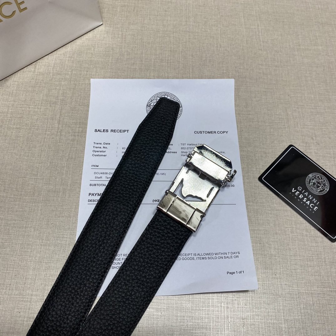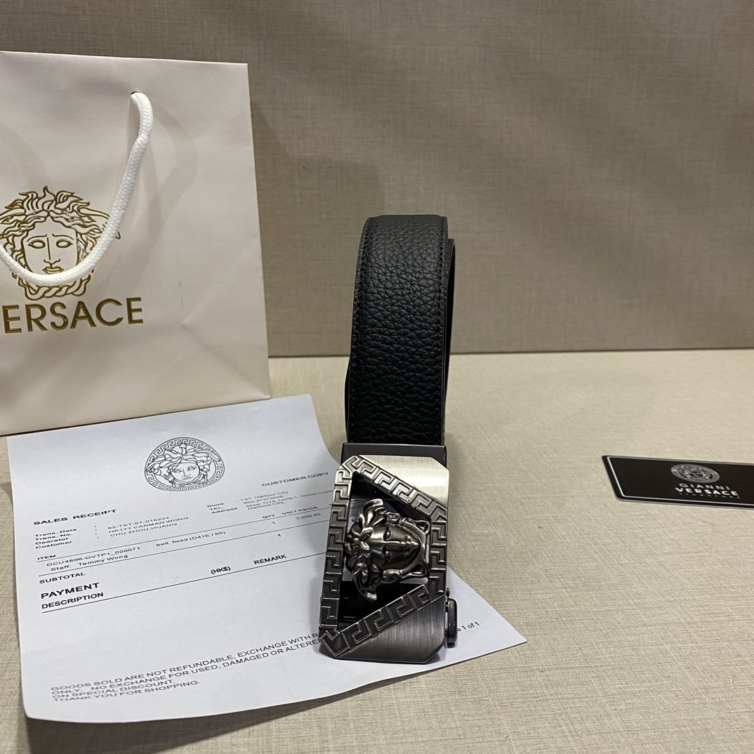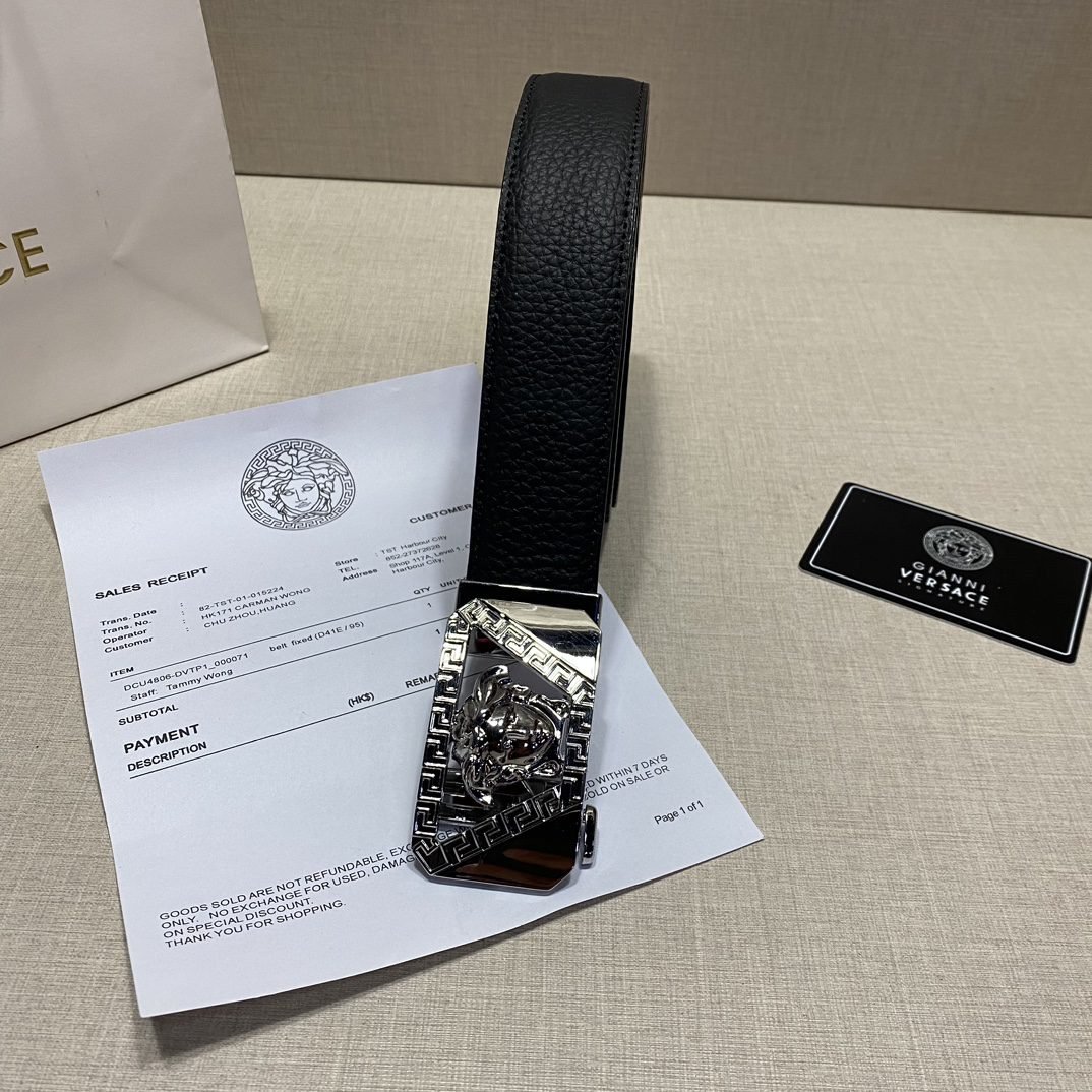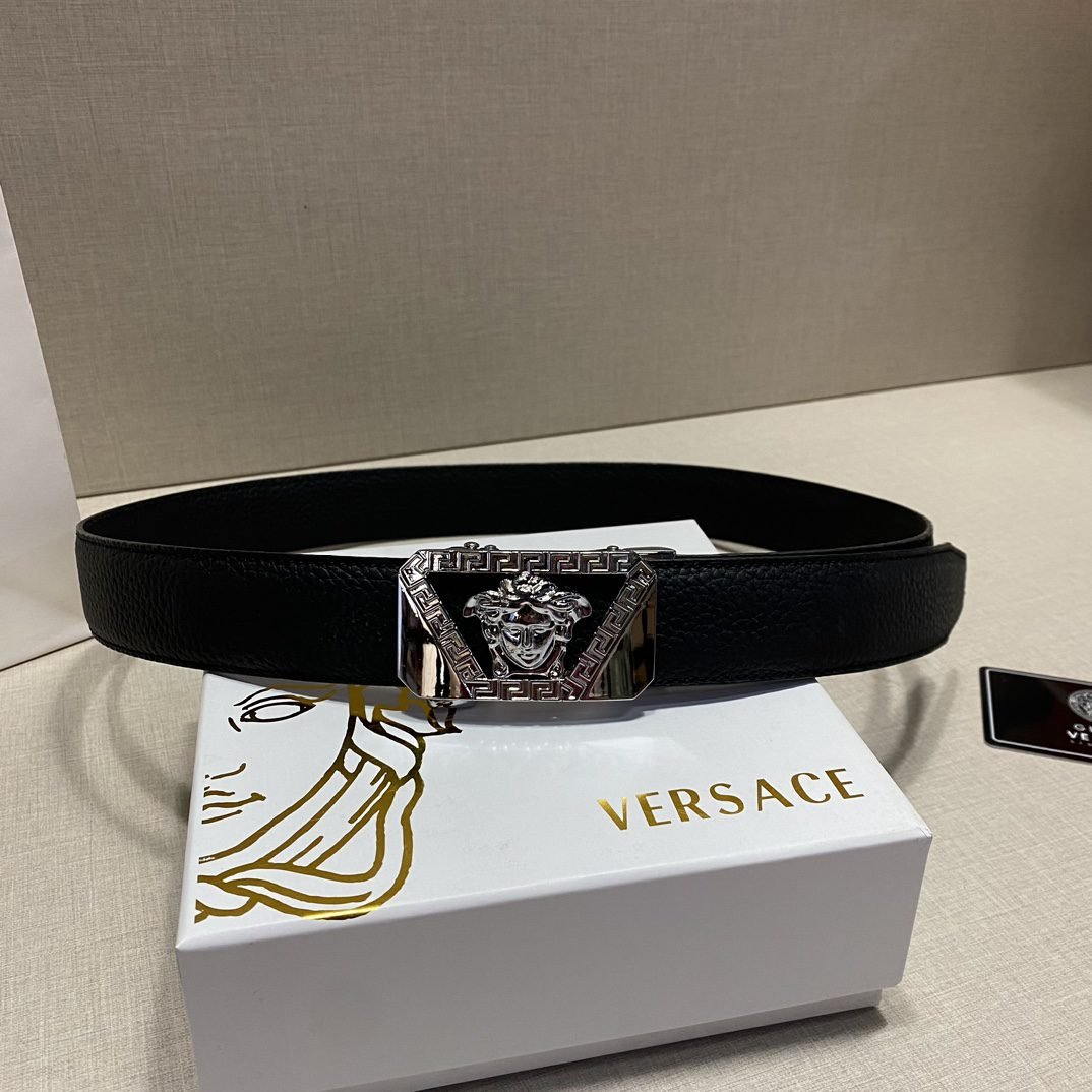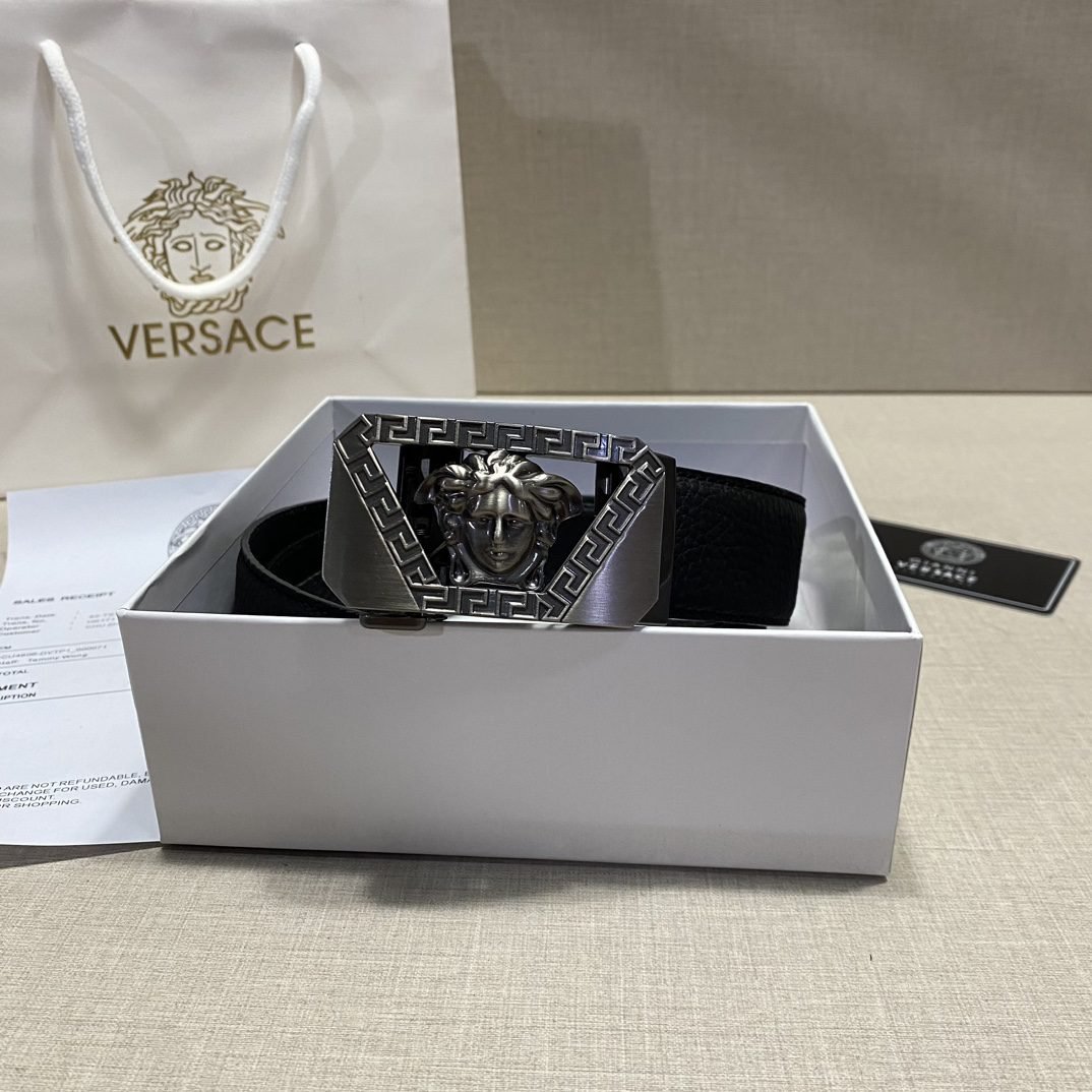 Home Belt VERSACE Belt Versace Silver Square Buckle Black Belt Simple, Fashionable, Noble, and Elegant