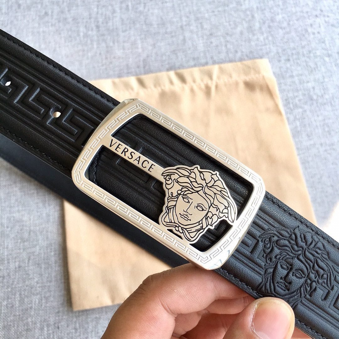 Versace Classic Square Buckle Black Texture Belt Simple, Elegant, Exquisite, and Elegant