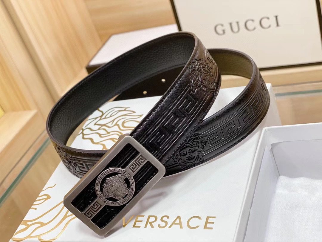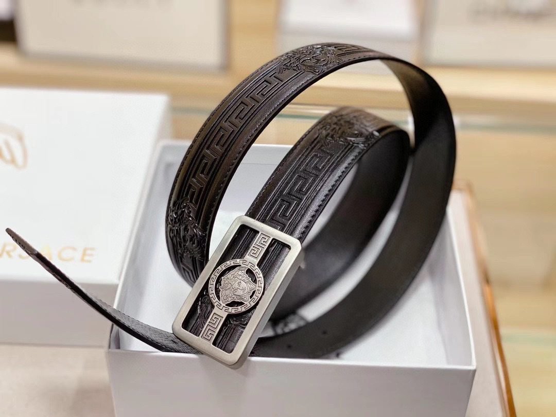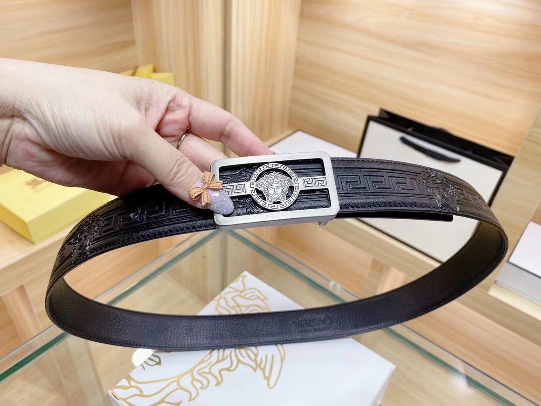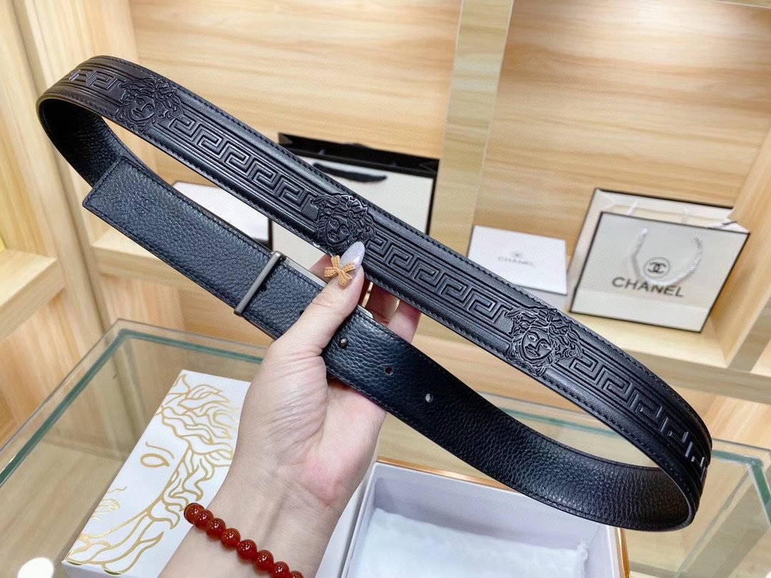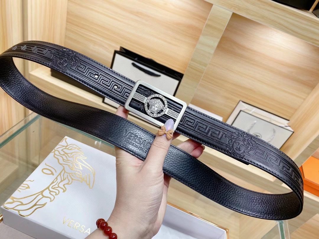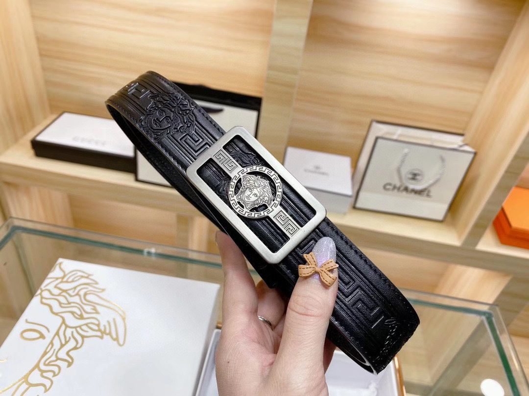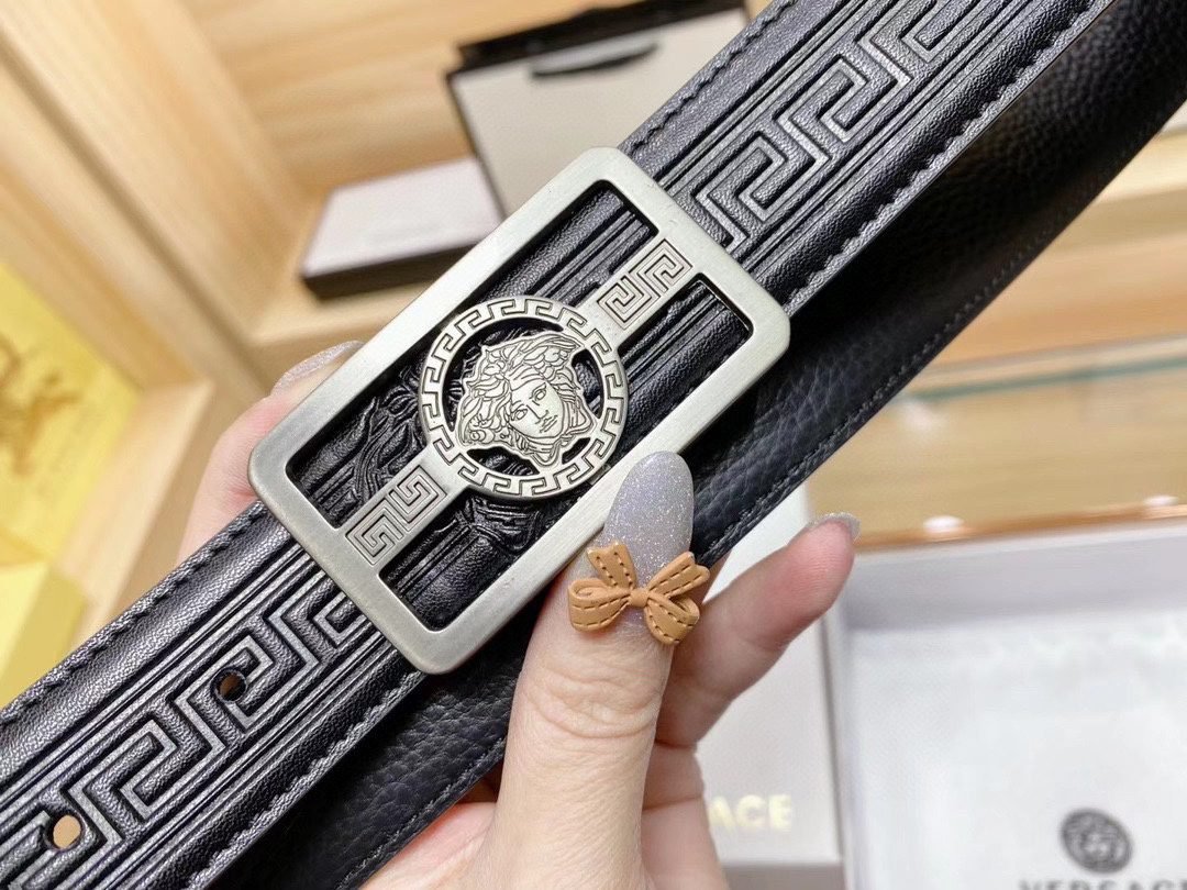 Home Belt VERSACE Belt Versace silver square buckle with black texture belt, simple, fashionable, noble, and elegant