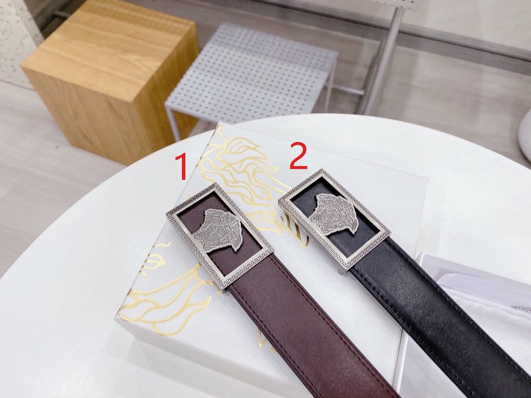 Home Belt VERSACE Belt Versace silver square buckle with double-sided usable belt, simple and elegant, classic and fashionable
