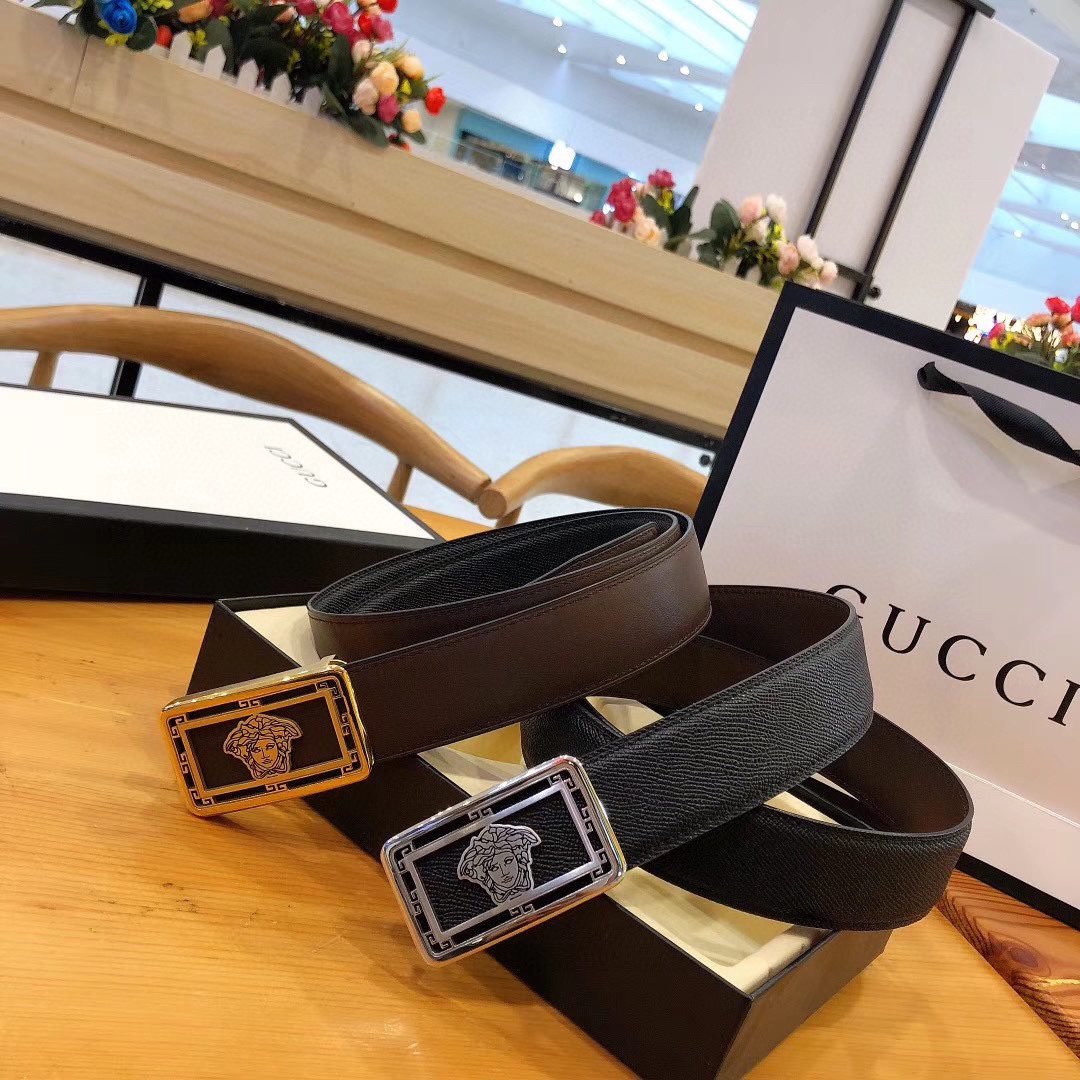 Versace square Medusa embossed buckle belt, simple, atmospheric, low-key, luxurious