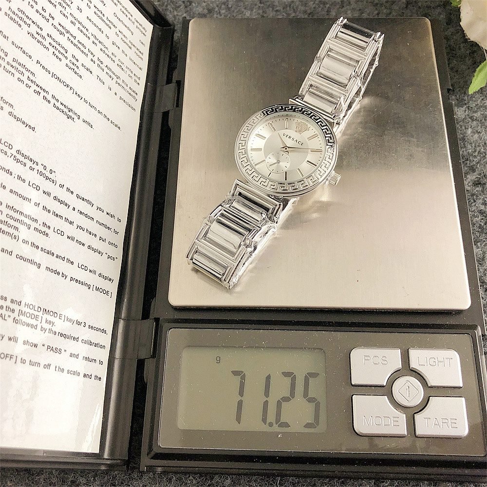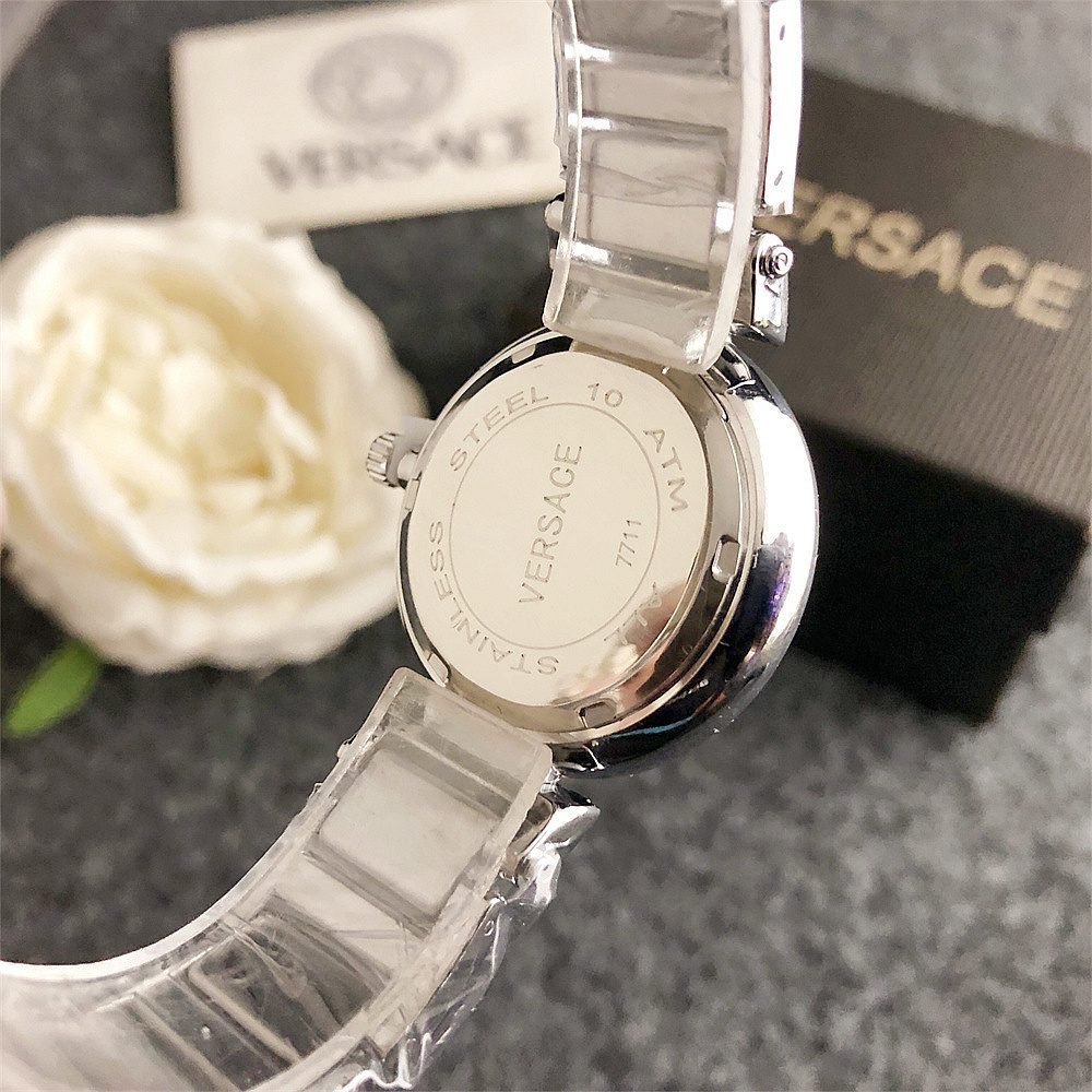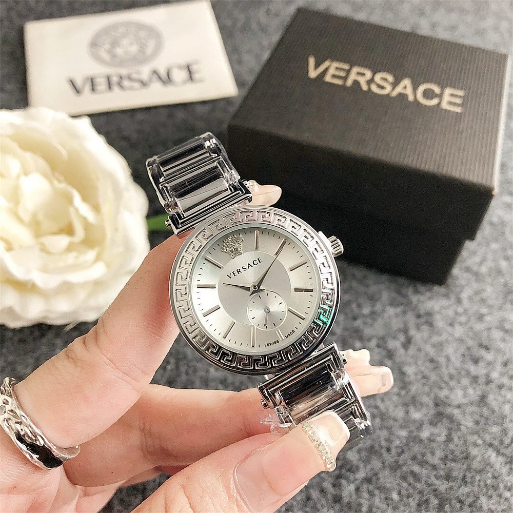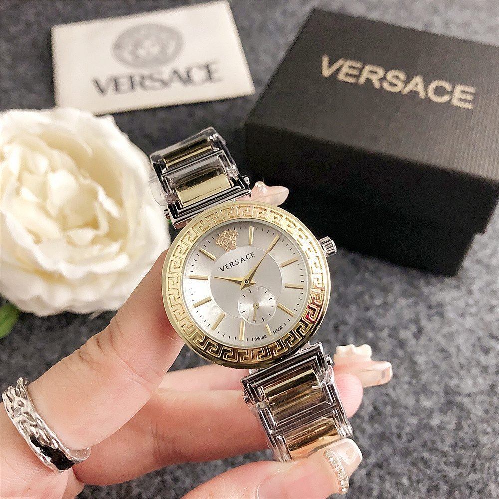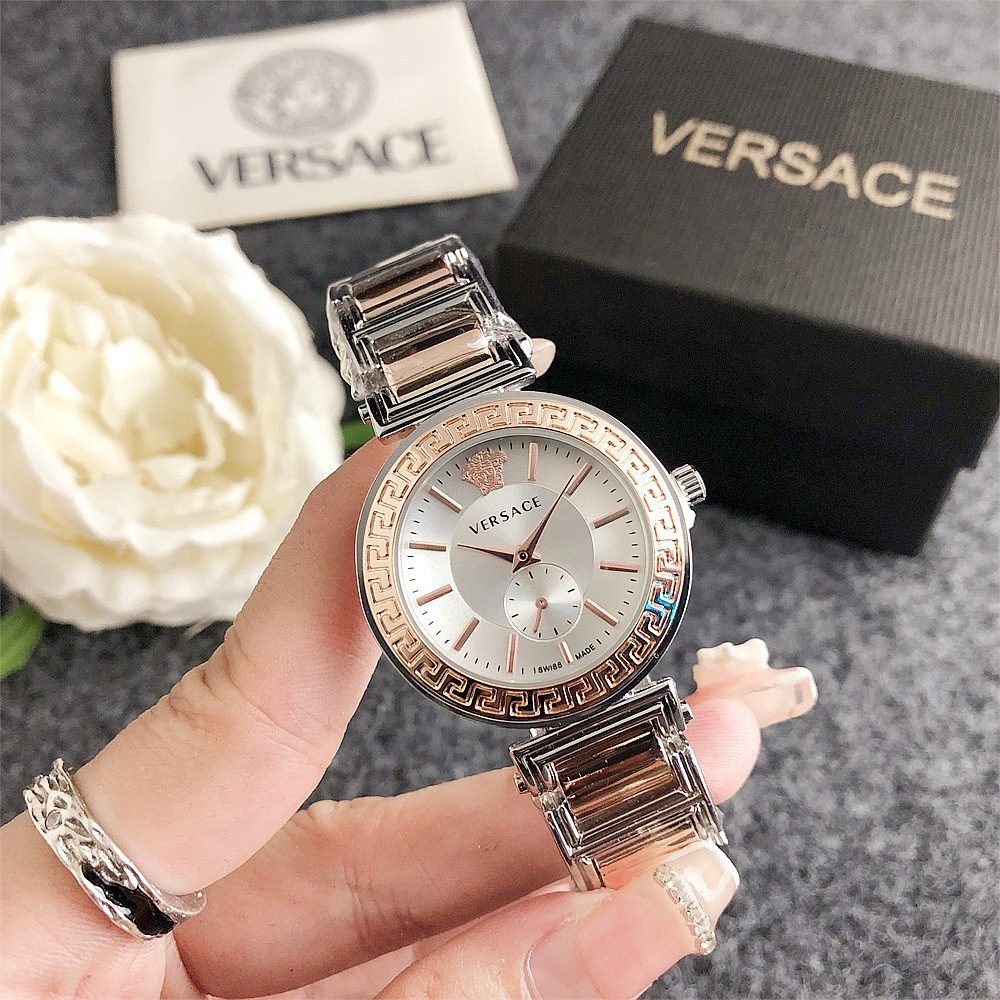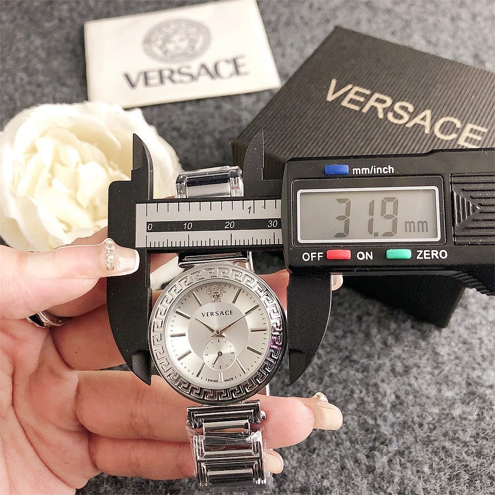 Decoration: The top ring of the watch case is decorated with Greek ripple patterns and Versace logo, showcasing the brand’s unique style.