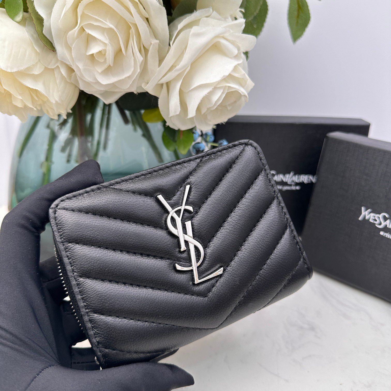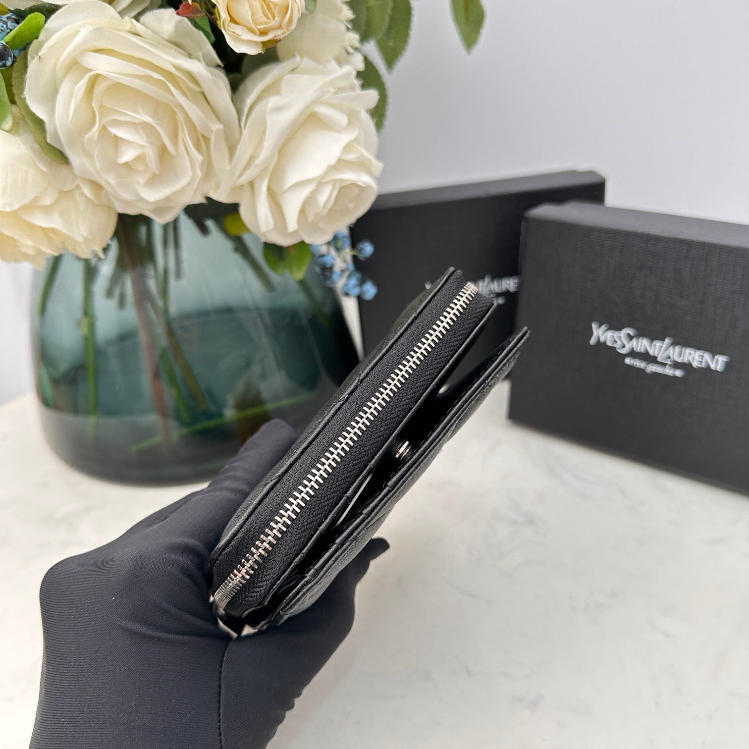 YSL Kat caviar Short round zip wallet 1890 black size: 12*10*3CM $128.00 Original price was: $128.00.$125.00Current price is: $125.00.