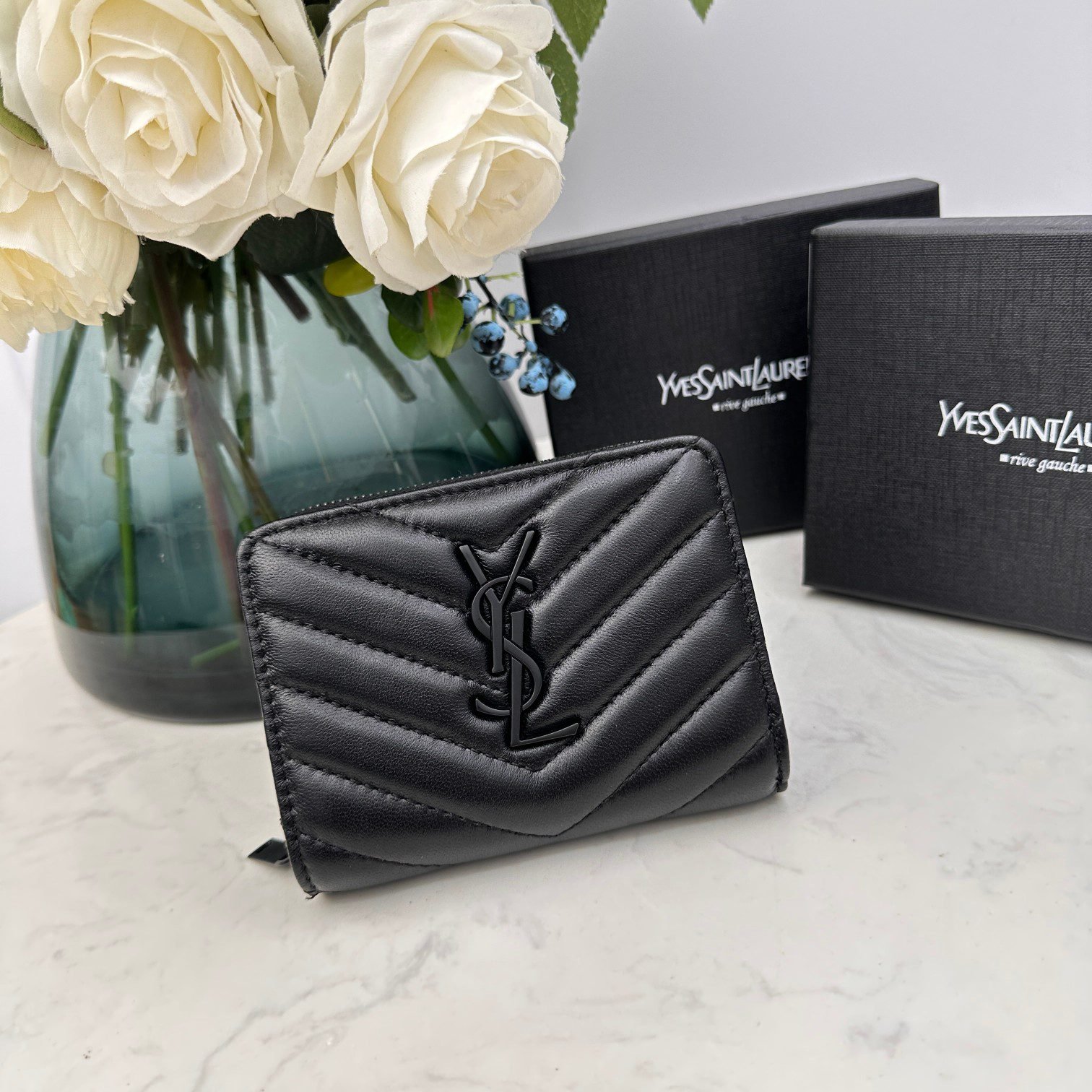 YSL SLP short round zipper money clip wallet